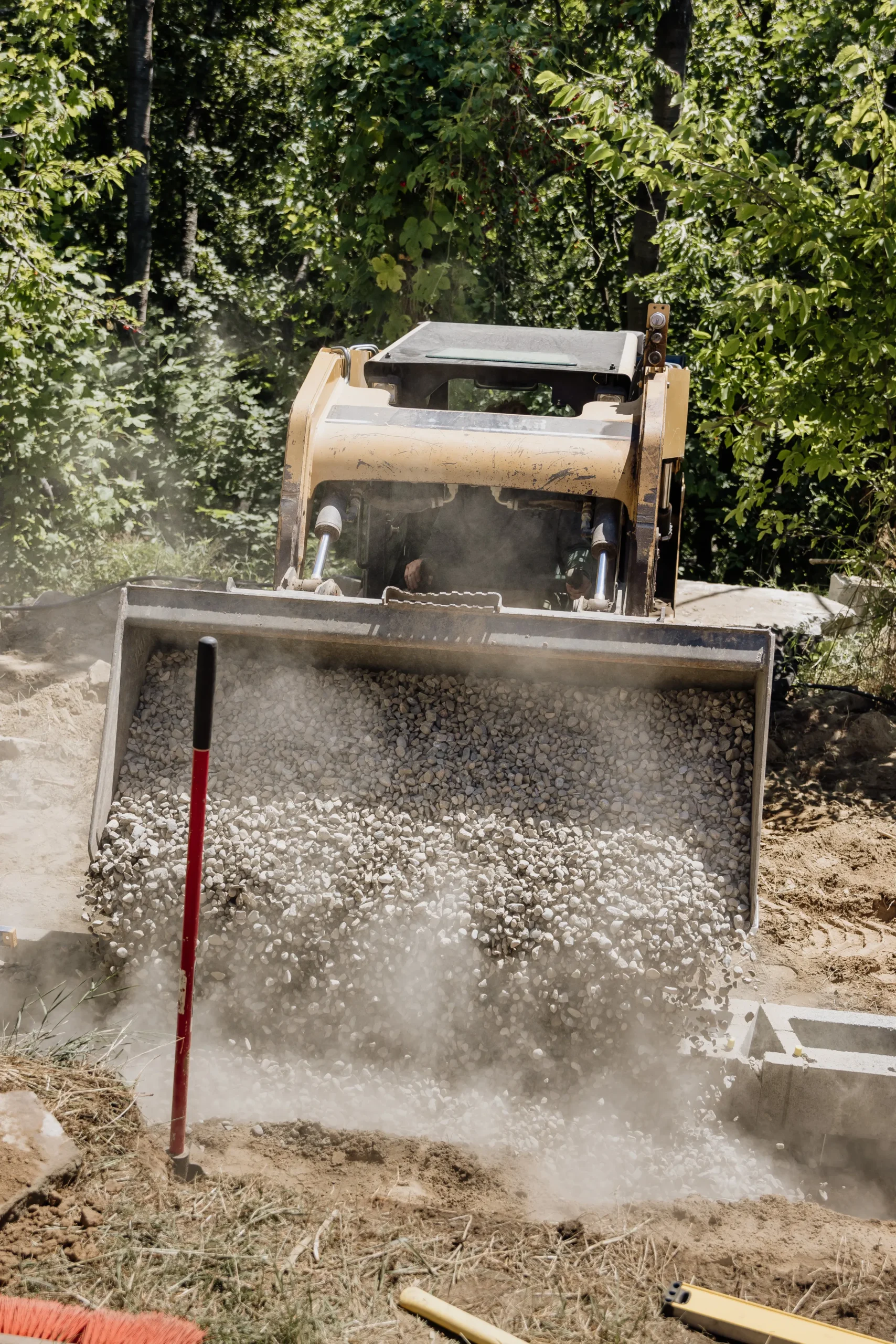 Our excavation and machine services cover grading, clearing, terrain-shaping, and drainage to establish a stable foundation for patios, retaining walls, driveways, and more.